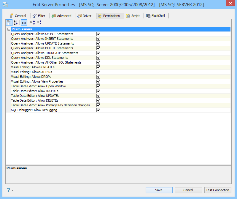 Edit the Permissions in Server Properties in Aqua Data Studio: