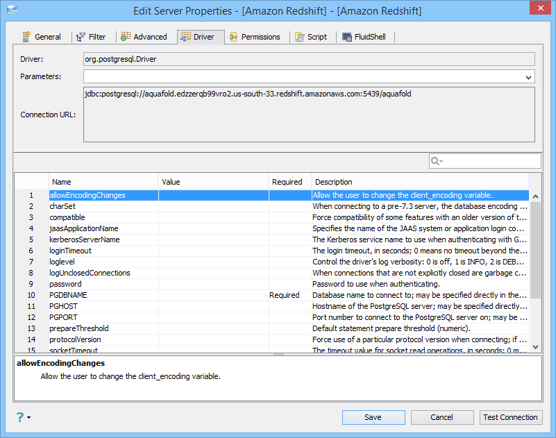 Edit the Drivers Properties to use Driver Parameters in Aqua Data Studio: