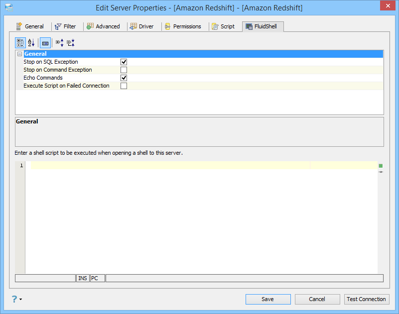 Edit Shell Scripts in Server Properties in Aqua Data Studio: