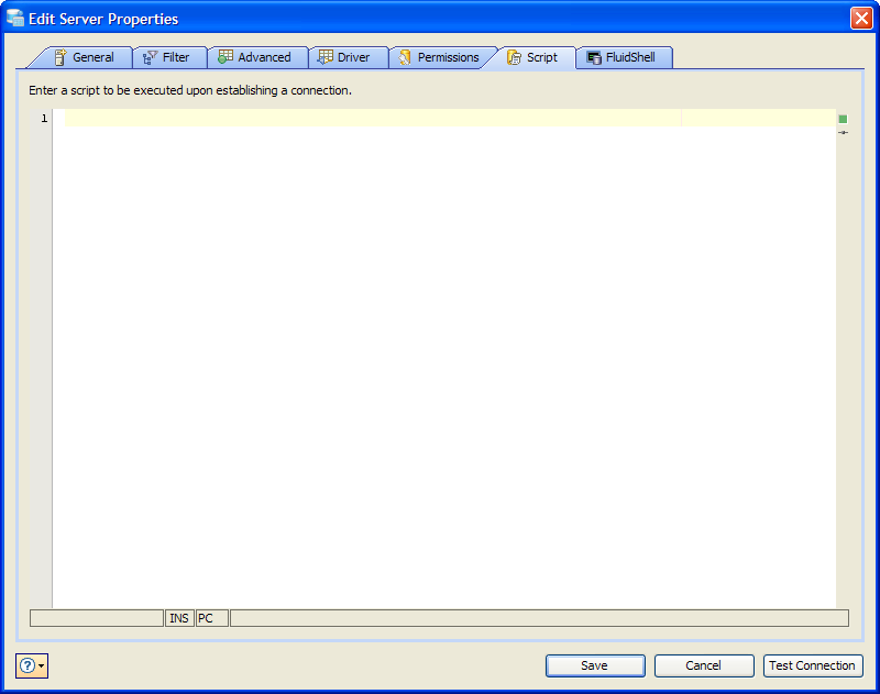 Edit Scripts in Server Properties in Aqua Data Studio: