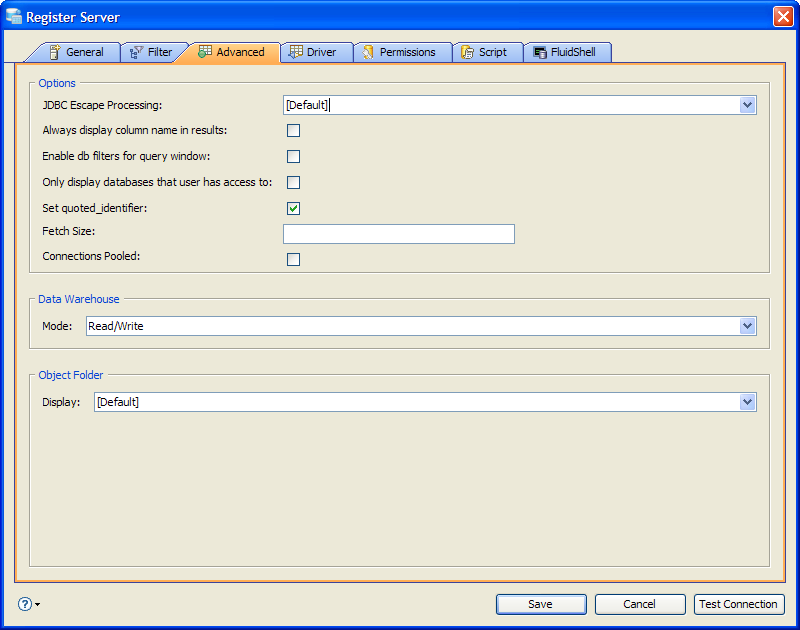 Edit the Server Properties to use Advanced Properties in Aqua Data Studio: