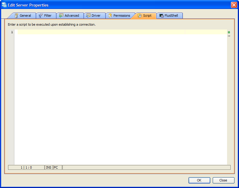 Edit Scripts in Server Properties in Aqua Data Studio: