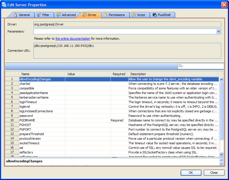 Edit the Drivers Properties to use Driver Parameters in Aqua Data Studio:
