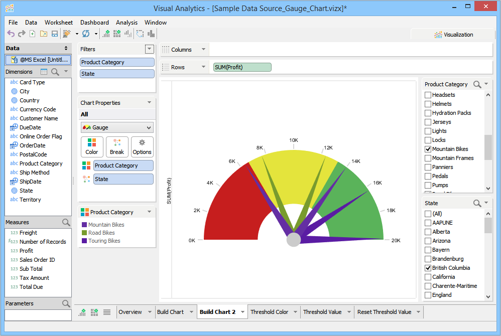 Download and connect to the sample data source. We are making this chart using 2 dimensions and 1 measure.