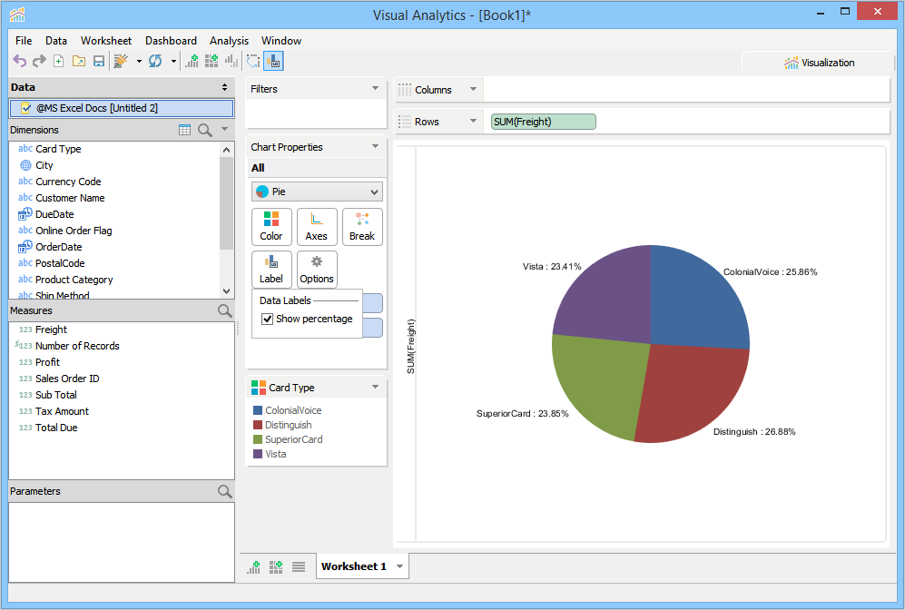 6. Click [Label] button within the Chart Properties and check [Show Percentage].