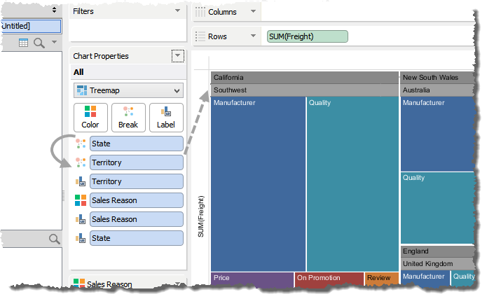5. Drag Territory from the Dimensions Pane to the Break and Label buttons in the Chart Properties.