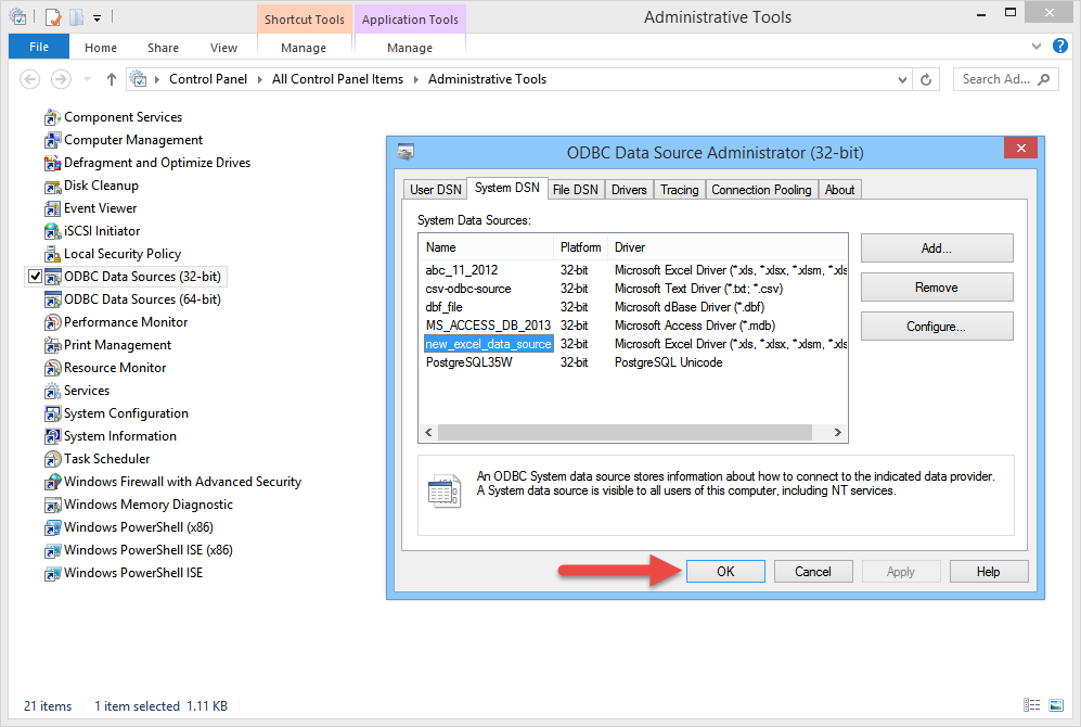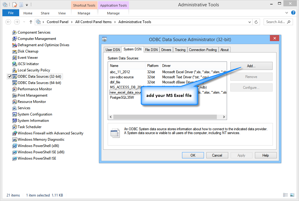 Add the ODBC data source |