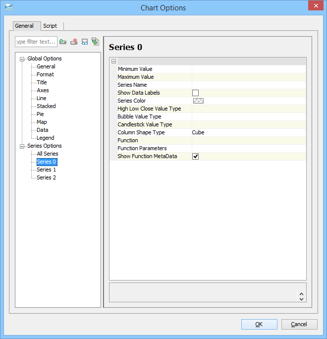 Series Options ( Advanced Options ) In the Series Options ( Advanced Options ), you have the ability to add and remove virtual function series. For more on the Function Series capabilities and their use, see the Function Series page. Other advanced options include the following: All Series