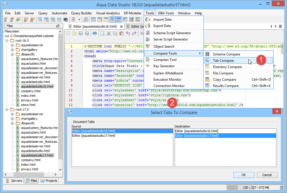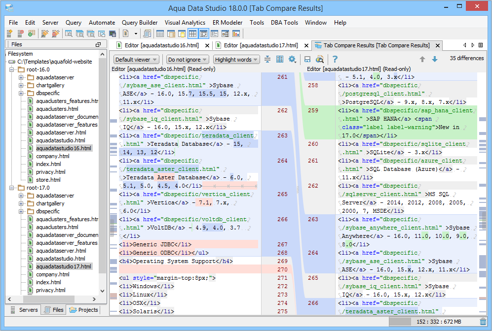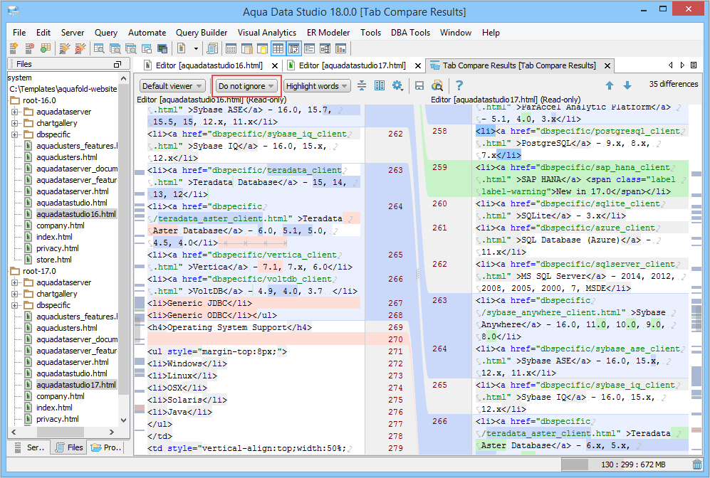 Preview the saved comparison result in the HTML format. |
