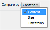 Displays the comparison result by content, size, and timestamp. |