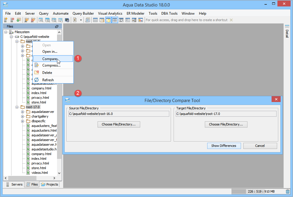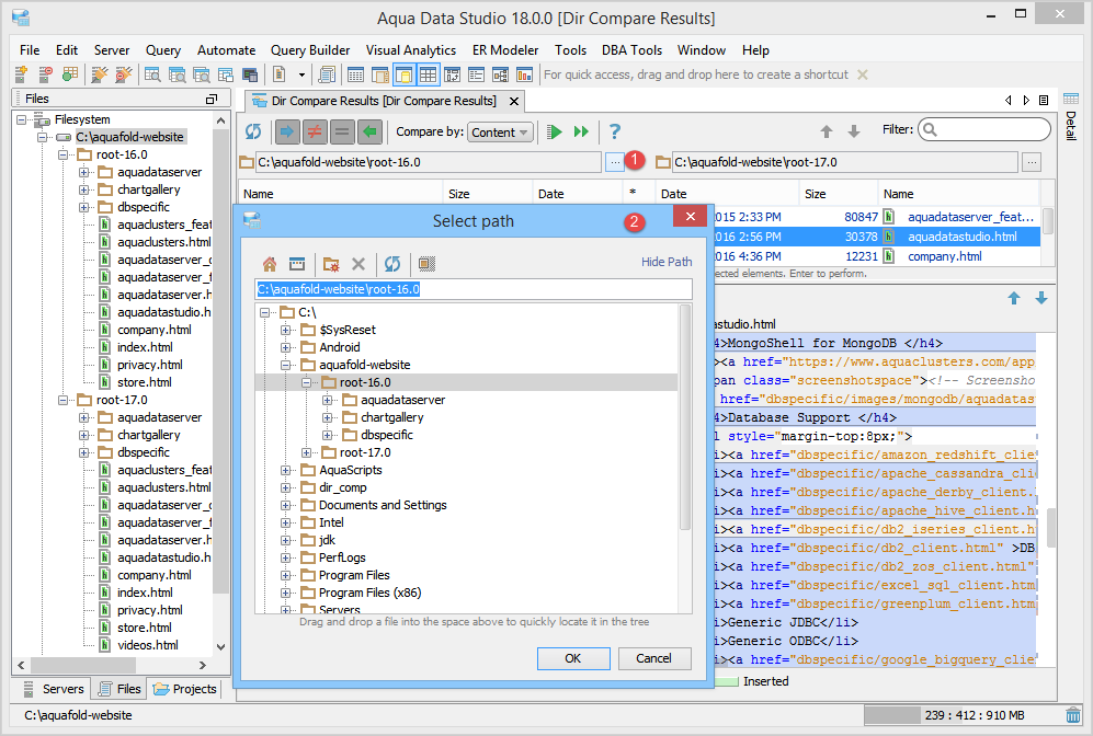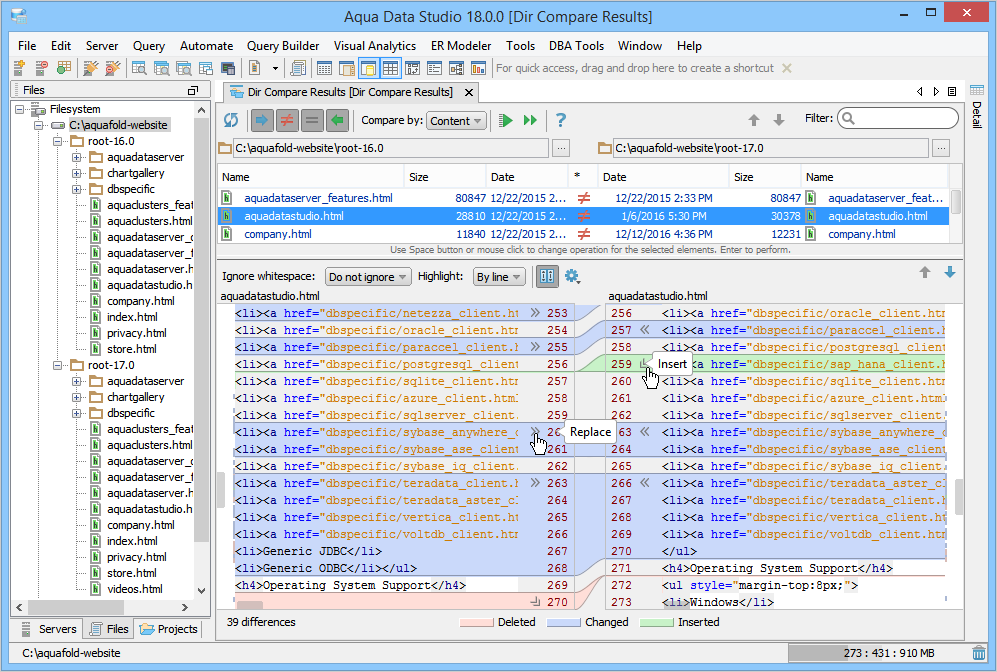Directory Compare provides a method of identifying differences between contents of the directories and supports synchronizing selected or all differences of the selected files.