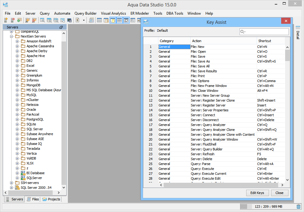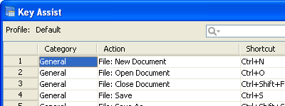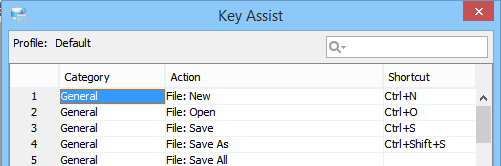 Key Assist - (Ctrl+Shift+L) The Key Mapping Assistant allows a user to quickly look up an action and find the corresponding key binding. Application - Keymappings - Default Application - Keymappings - Emacs