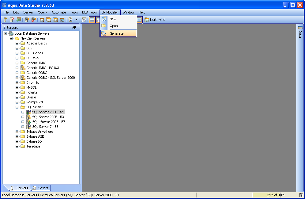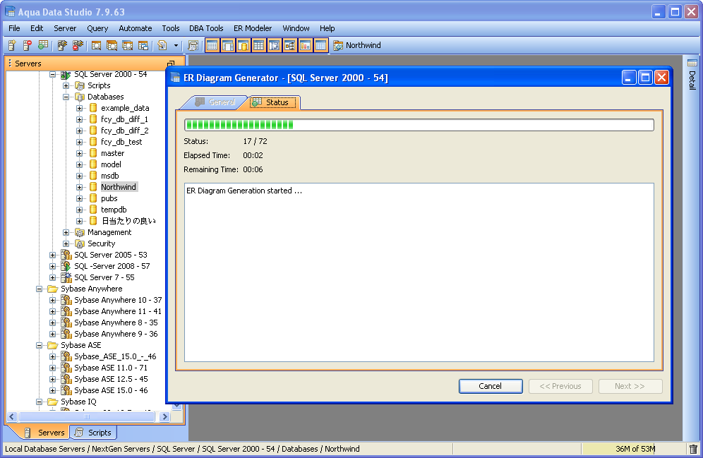 The Entity Relationship (ER) Diagram Generator helps users achieve a better understanding of their database schema by displaying the structure in a graphical format. The ER Diagram Generator uses the fully-featured Entity Relationship (ER) Modeler to create saveable, editable and exportable .xed diagrams that can be shared as part of a version control repository. See the full documentation on the Entity Relationship Modeler here for more on how to forward and reverse engineer database, migrate database and export for ERWin and Visio. Below are instructions on how to launch the ER Diagram Generator from the Main Appliction Menubar and the Schema Browser. 1. Launch the ER Diagram Generator dialog by Selecting ER Modeler->Generate from the Menu Bar or Selecting Tools->ER Diagram Generator from the right-click pop-up menu on a database object in the Schema Browser. 2. In the ER Diagram Generator dialog select a Database and Schema (or All Schemas). In the left panel, select one or more of the Object Types to be diagramed (Tables, Views or Both). Click the green check button to select all and the red X button to deselect all. All objects matching the selected schema and object types will appear in the right panel. Select one or more objects to be diagramed 3. Click Next to generate the diagram. The Status Tab will display with information on the diagram's creation including elapsed time, time remaining and number of objects diagrammed. Once the diagram is generated, the ER Modeler will open and display the new diagram. All of the table entity objects created can be edited, repositioned and exported. See the ER Modeler section for the full details on its capabilities and features. |
