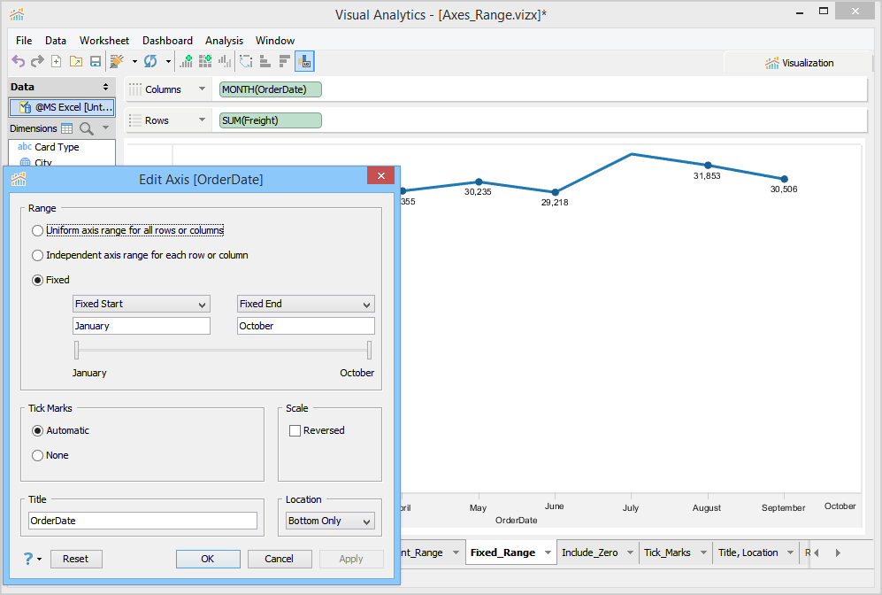 Visual Analytics sets an independent range for each row or column based on the minimum and the maximum values in the data.
