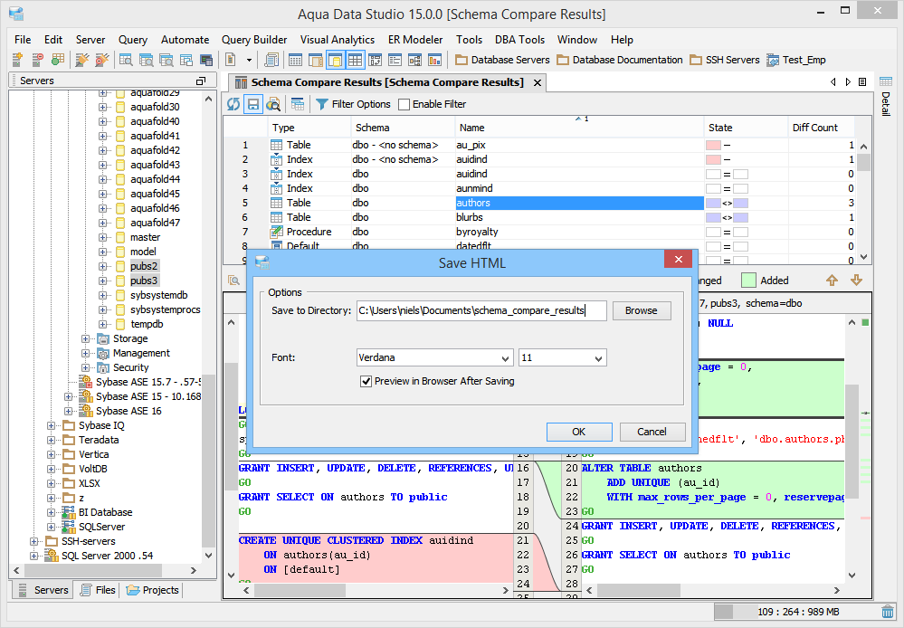 For comparing schemas, you must have SELECT and EXECUTE privileges on the schema objects you want to compare.
