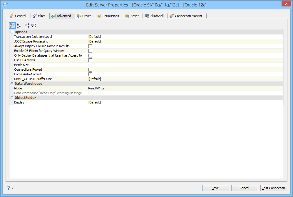 Edit the Server Properties to use Advanced Properties in Aqua Data Studio: