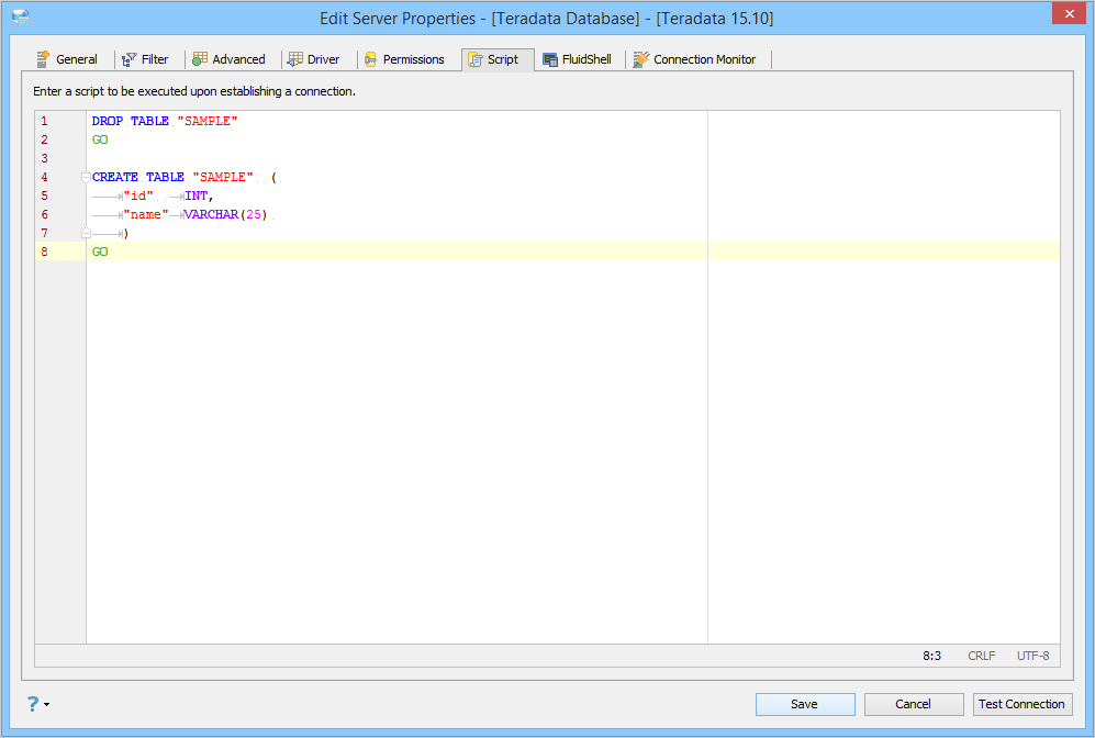Edit Scripts in Server Properties in Aqua Data Studio:
