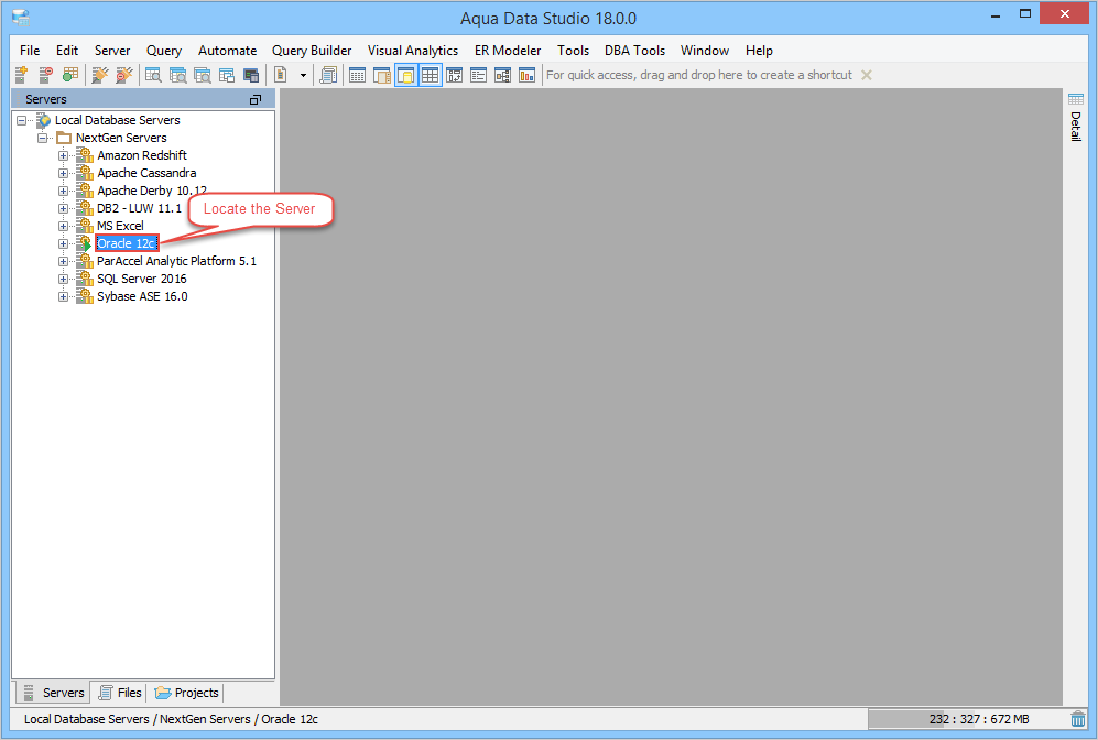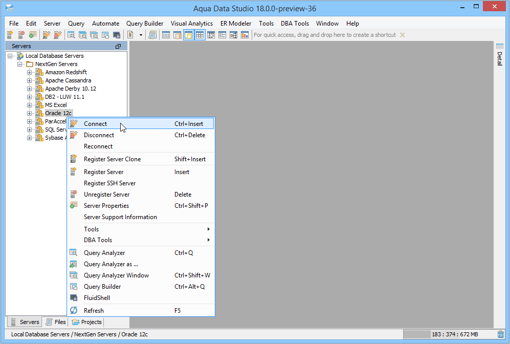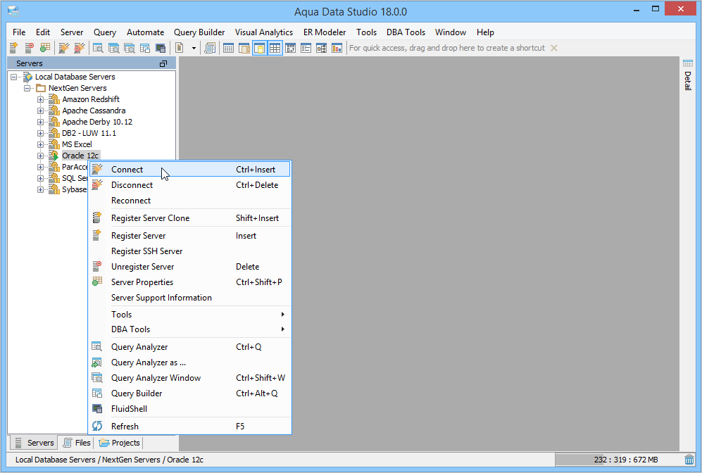Once you have installed Aqua Data Studio, you will need to register your servers before you get started. Server Registrations are created, edited, grouped, connected to, and disconnected from most easily through the Schema Browser.