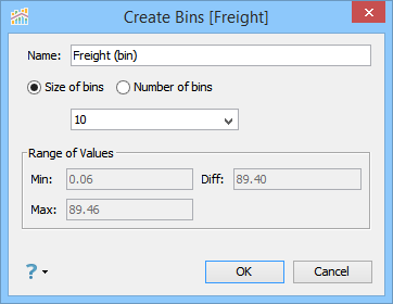4. Choose [Size of bins] and entering 10 in the input field of the [Create Bins] dialog and click OK.