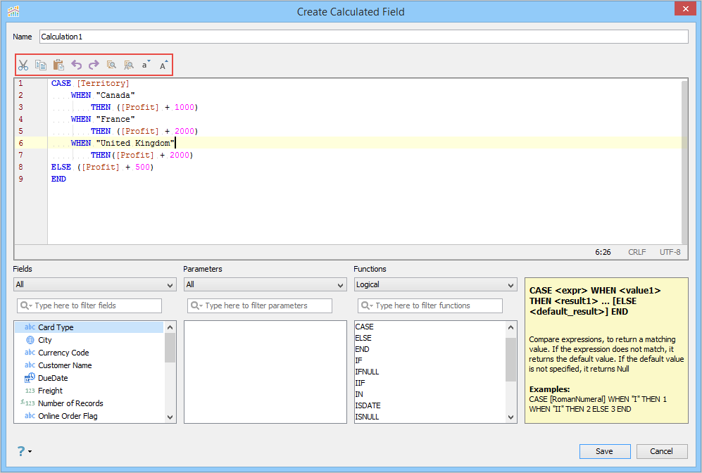 You can modify the expression by using the options in the toolbar.