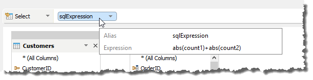 Any expressions you type in the [Select] Deck [SQL Expression] Dialog appear as items in the Select Deck. Mouse hover over an Expression in the [Select] Deck produces a tooltip letting you know what the Expression contents are.