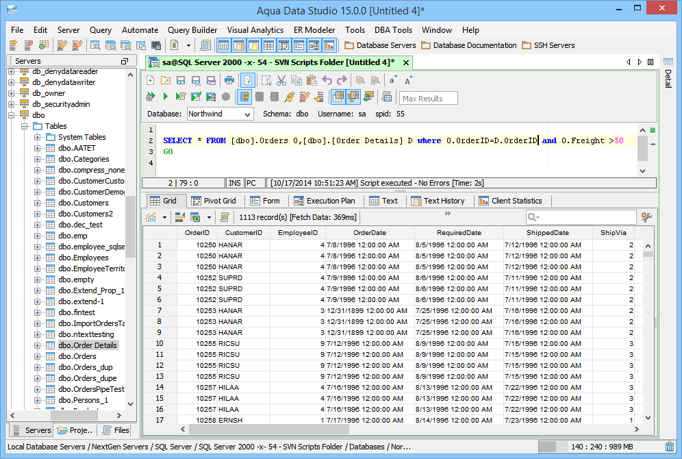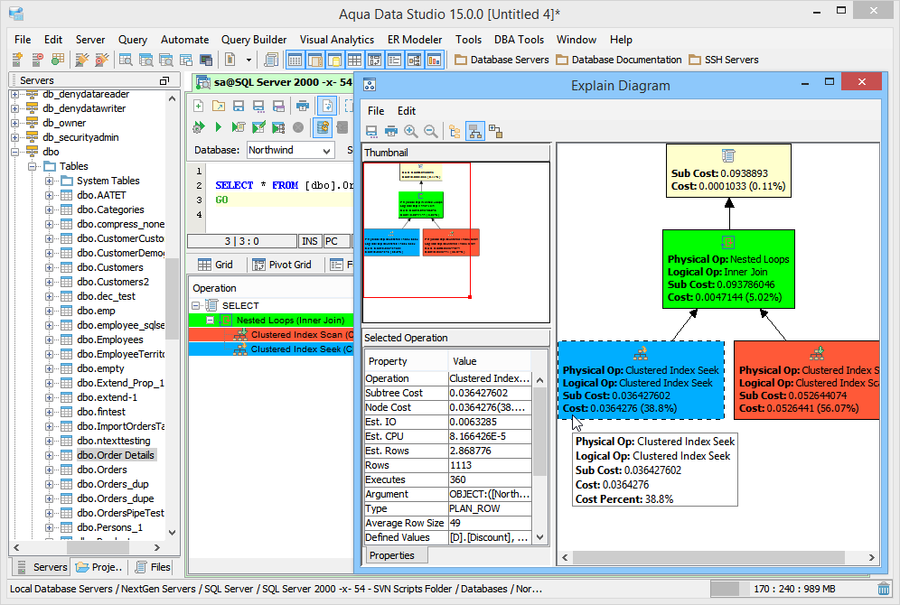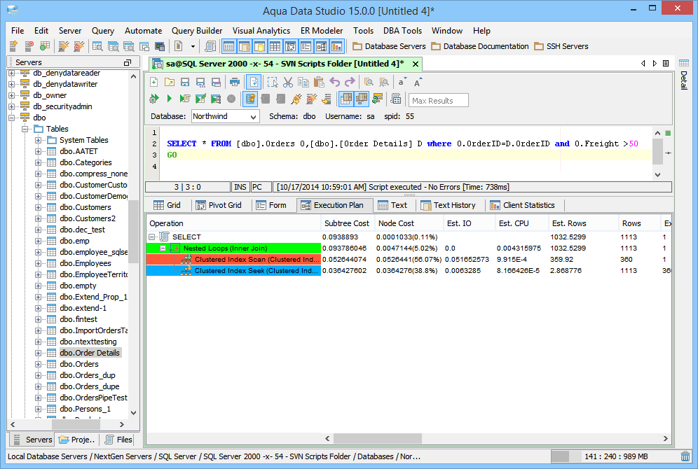The Query Analyzer is one of the most powerful Tools in Aqua Data Studio, and is the foundation of the application's functionality. The SQL statements and queries normally run within a database commandline interface can be typed within the Query Analyzer and executed (CTRL + E). Aqua Data Studio also vastly expands the commandline capabilities of each database vendor with the addition of statement autocompletion, customizable syntax highlighting, advanced chart scripting, statement formatting and source code beautification, server side comments and client side comments, morph to delimited list, parsing and much more. In combination with Aqua Data Studio's integrated source control clients for CVS and Subversion (SVN), the query analyzer automatically display differences between current edits and a source control repository as edits are being typed. When queries are executed in the Query Analyzer their results can be displayed in several ways; as text, text history, grid, pivot grid and execution plans. Statistics on a query run from the Query Analyzer and its script details are also available within a tab. The section describing Query Analyzer's Results tabs gives further details. The contents of the Query Analyzer can be saved in a variety of ways and in a variety of formats and encodings, allowing reuse as scripts within Aqua Data Studio or for emailing and sharing. Any of the commands executed from within the Query Analyzer can also automatically be stored in The SQL History. Many of the common SQL CREATE, DROP and INSERT statements that can be typed in the Query Analyzer are also available as right click menu items within the Schema Browser for visual editing. The same statements and commands a database developer or DBA would need to run on a database's proprietory tool or commandline interface for database administration exist within Aqua Data Studio's DBA Tools. Using the Keyboard combination CTRL + Q , Launches the Query Analyzer. The Keyboard Combination CTRL + E executes the queries in the Query Analyzer. The Keyboard Combination CTRL + ALT + ENTER execute edits the current query in the Query Analyzer. This allows Editing of Table Data. To execute Explain Plans for a query for tuning from the Query Analyzer, use CTRL + SHIFT + ENTER. |