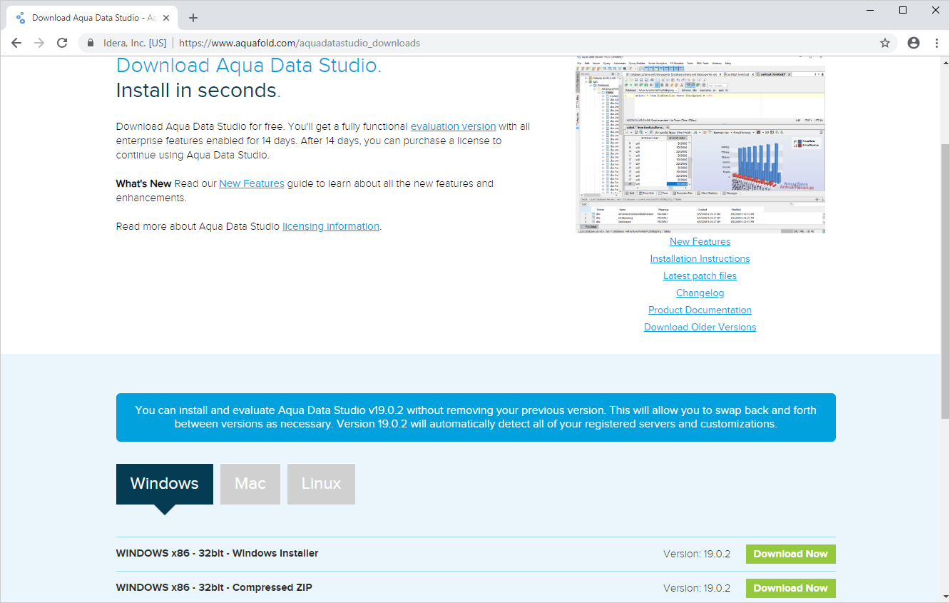 If you've already installed a previous version of Aqua Data Studio, it is best to install the newest version in a different directory (the installer will pick a new directory by default).