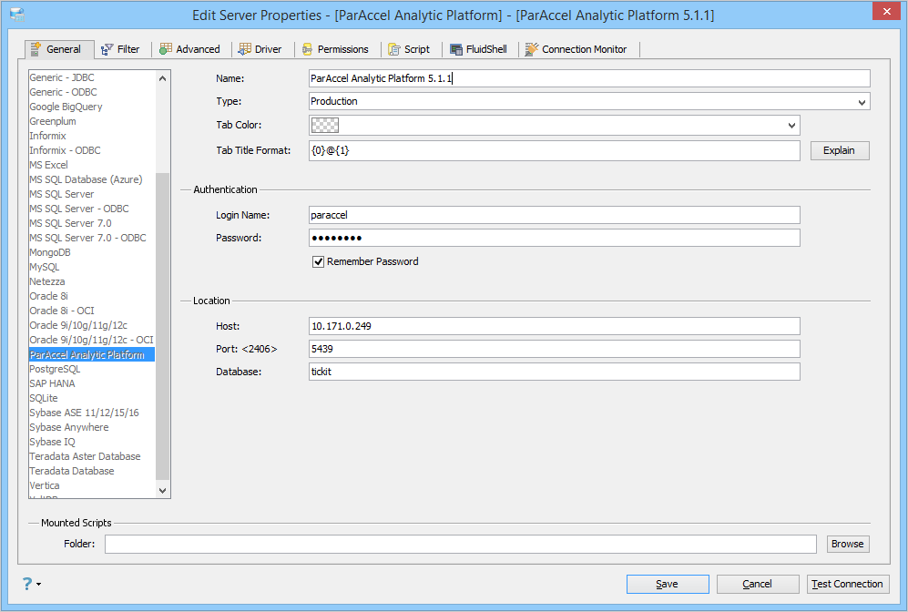 Edit Scripts in Server Properties in Aqua Data Studio: