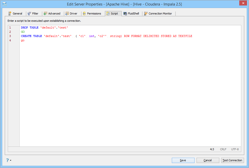 Edit Scripts in Server Properties in Aqua Data Studio: