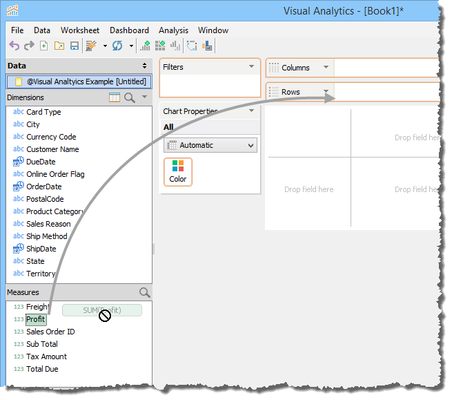 1. Click and drag Profit from Measures into the Rows deck.