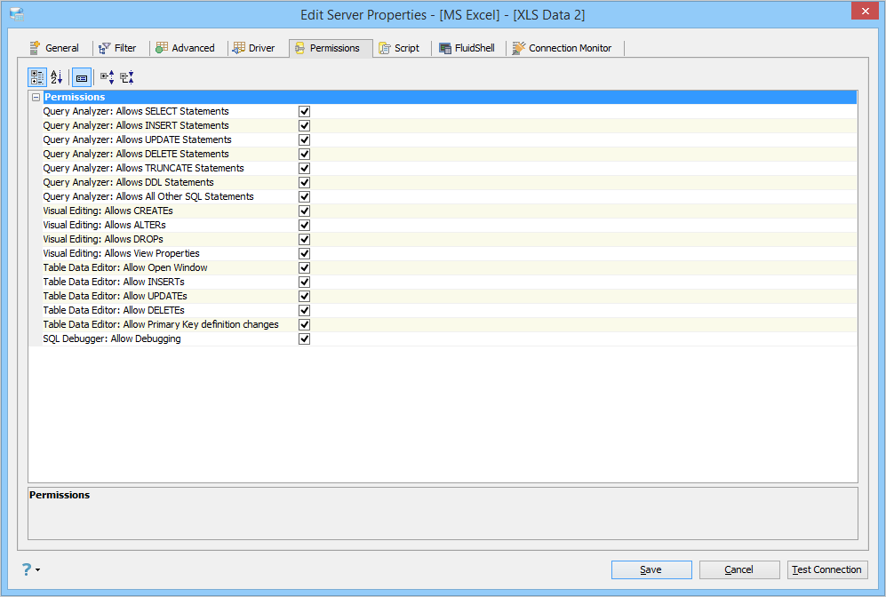 Edit the Permissions in Server Properties in Aqua Data Studio: