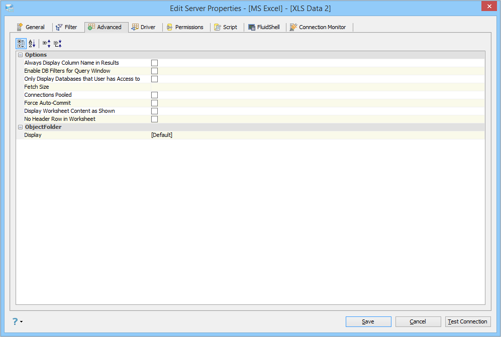Edit the Server Properties to use Advanced Properties in Aqua Data Studio: