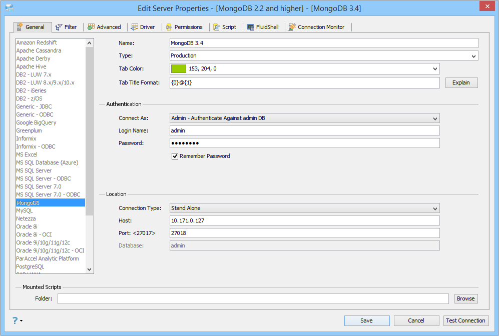 Edit Scripts in Server Properties in Aqua Data Studio: