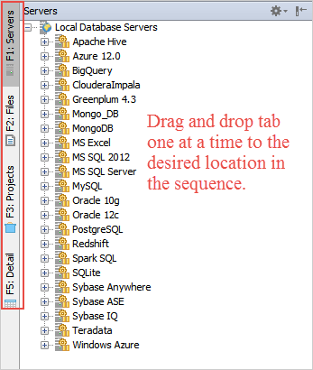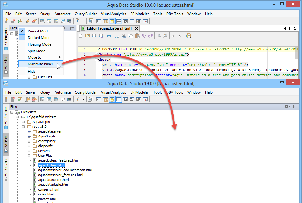 Dockable panels are supported in the following areas of Aqua Data Studio: