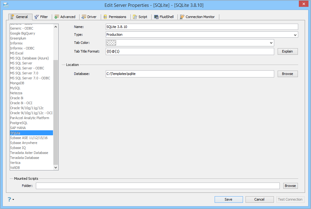 Edit Scripts in Server Properties in Aqua Data Studio: