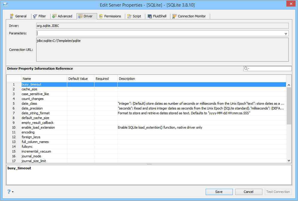 Edit the Drivers Properties to use Driver Parameters in Aqua Data Studio: