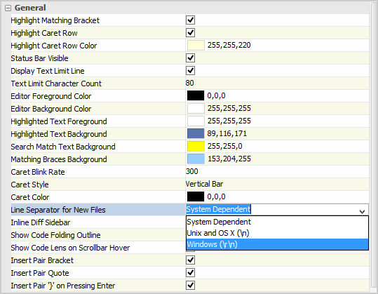 Insert Pair ‘}’ on Pressing Enter | Automatically inserts a corresponding closing brace when you insert an opening brace. If the Insert Pair Bracket checkbox is unselected, then when Enter is pressed, the editor automatically inserts a closing brace “}.” |