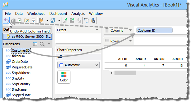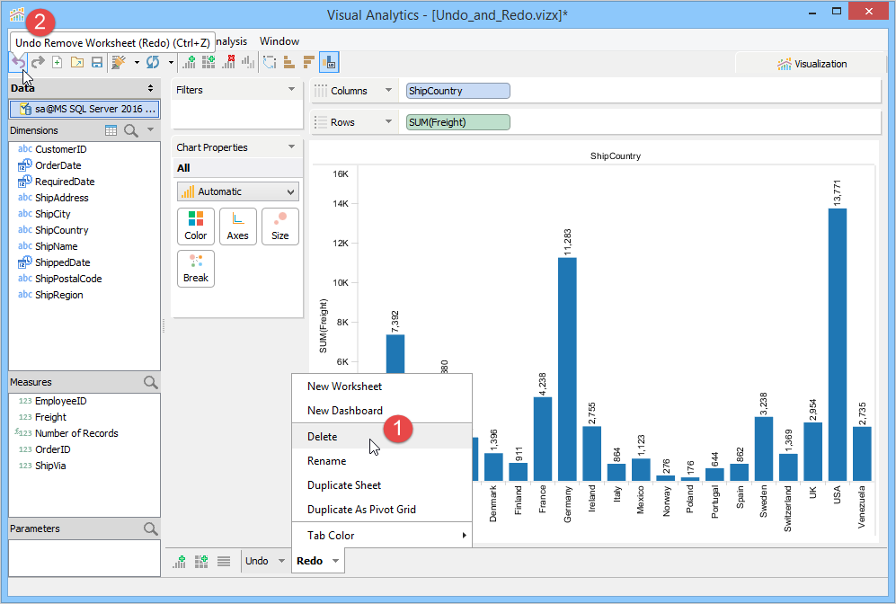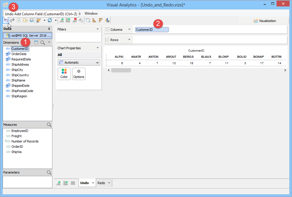 Hovering over the Undo or Redo button provides a tooltip of the most recent action taken which can be undone/redone.