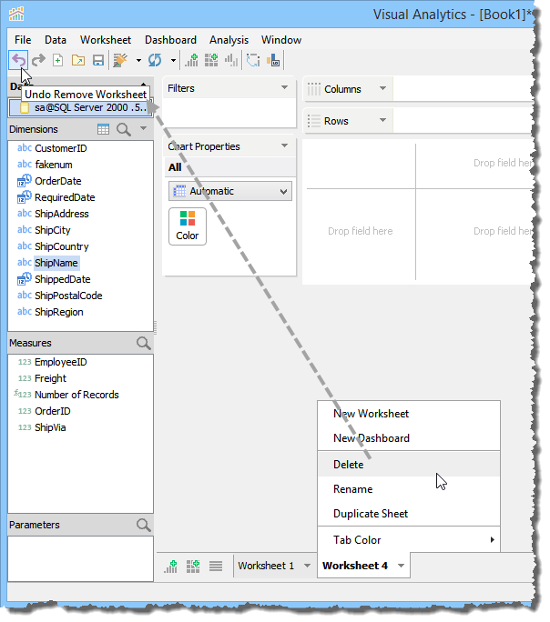 The Undo and Redo buttons in the Toolbar allow taking back the last action, or reinstating an undone action. If several steps are taken, the Undo and Redo buttons allow you to step forward or back to an original starting state. Some actions cannot be undone via the Undo/Redo buttons, such as generating an Extract or Replacing a Connection.