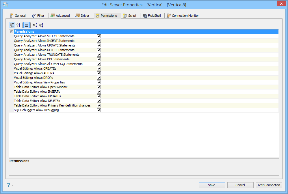 Edit the Permissions in Server Properties in Aqua Data Studio: