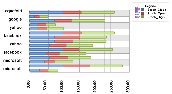 The Stacked Bar chart in Aqua Data Studio allows you to create a chart displaying the results of multiple queries stacked on top of each other vertically.