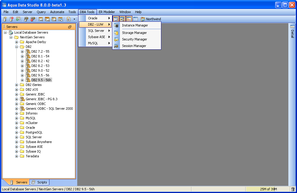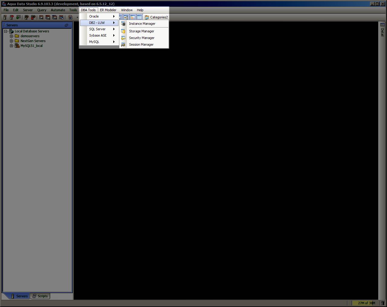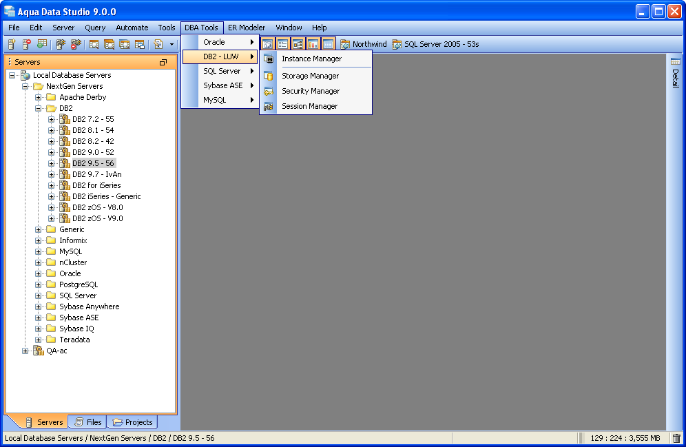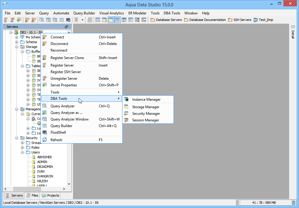 DB2 for LUW Database Administration (DBA) Tools - The DB2 for LUW Database Administration (DBA) Tools provide users with the tools to administer, manage and monitor all aspects of a DB2 for LUW database. The tools may be accessed from the application DBA Tools menu or from the schema browsers context sensitive popup menu. The following is a list of tools provided with a description of each tools functionality.