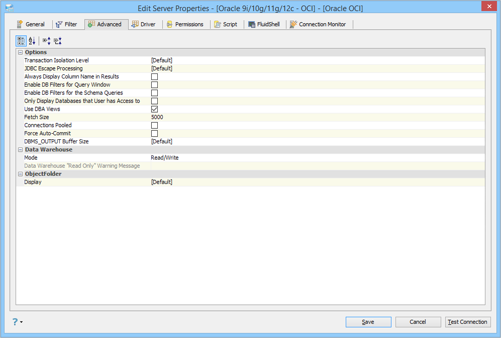Edit the Server Properties to use Advanced Properties in Aqua Data Studio: