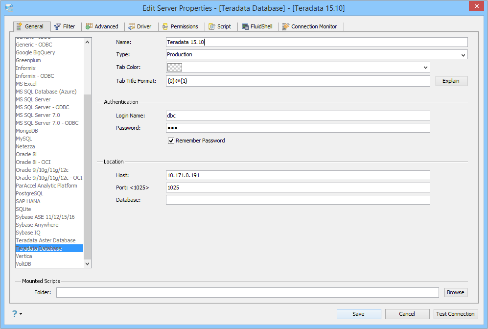 Edit Scripts in Server Properties in Aqua Data Studio: