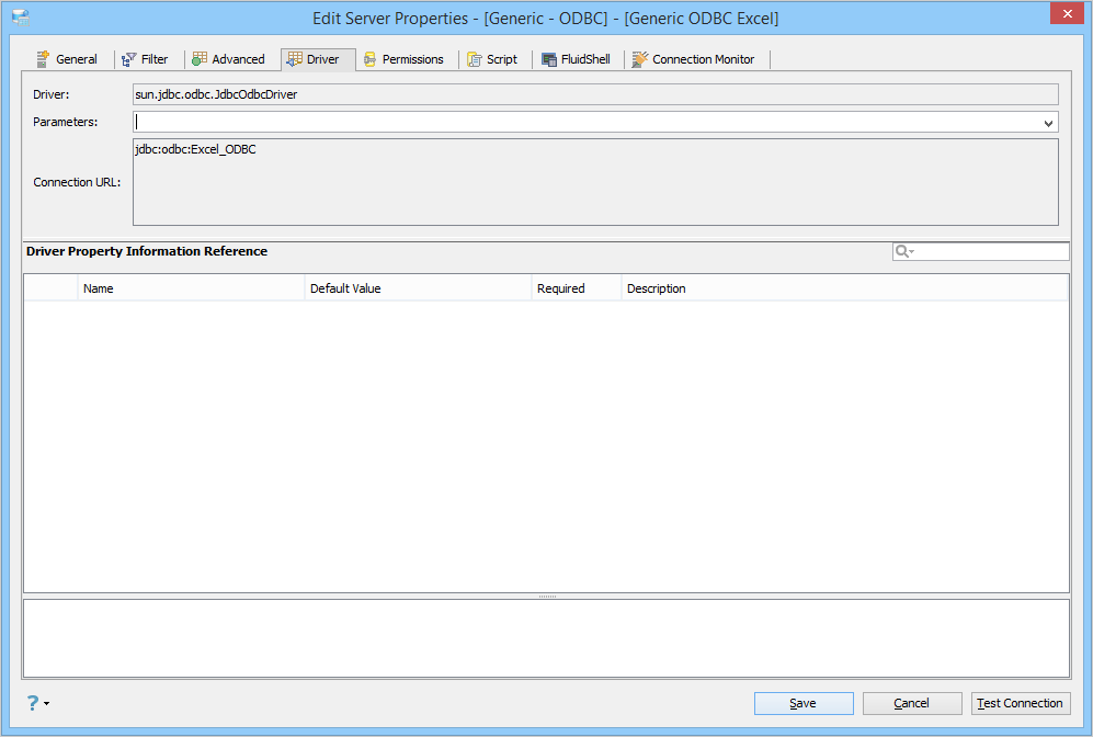 When registering a server using the Generic-ODBC connection type, make sure you specify the location of the driver which you will be using, with the correct URL and driver name. When registering a Generic-ODBC connection make sure that an ODBC data source has already been created for use.