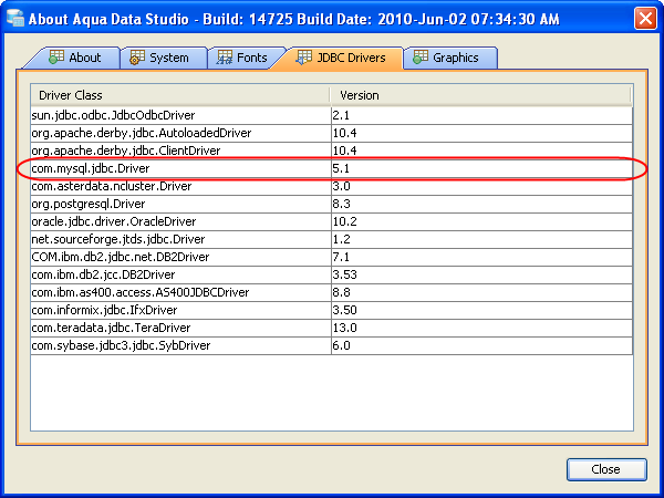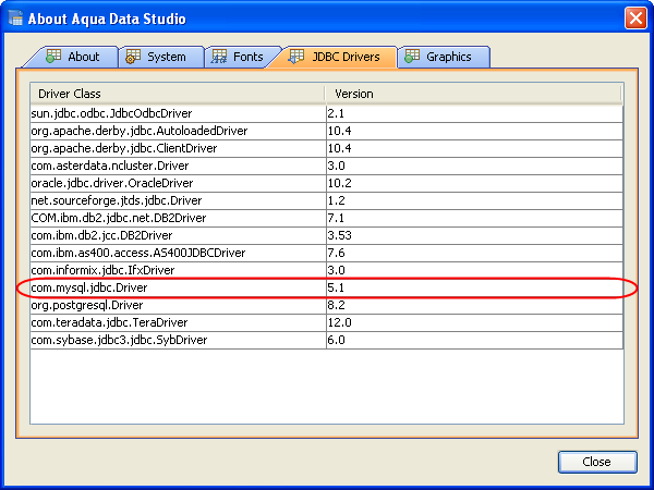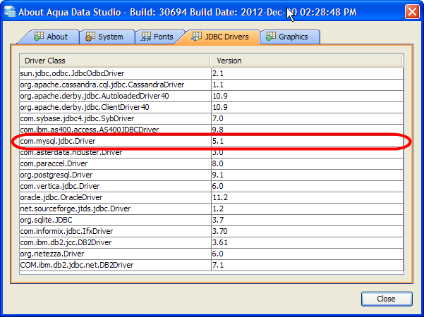 To update the Aqua Data Studio JDBC drivers for MySQL you need to overwrite the Aqua Data Studio mysql.jar and mysql-src.jar file. Below is a listing of the Aqua Data Studio library directory [ADS_INSTALL]\lib\drivers\ ...
