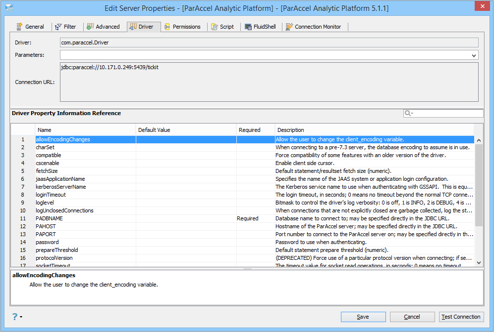 Edit the Drivers Properties to use Driver Parameters in Aqua Data Studio: