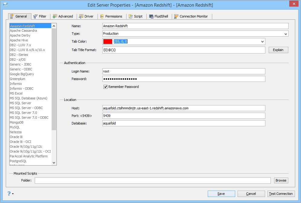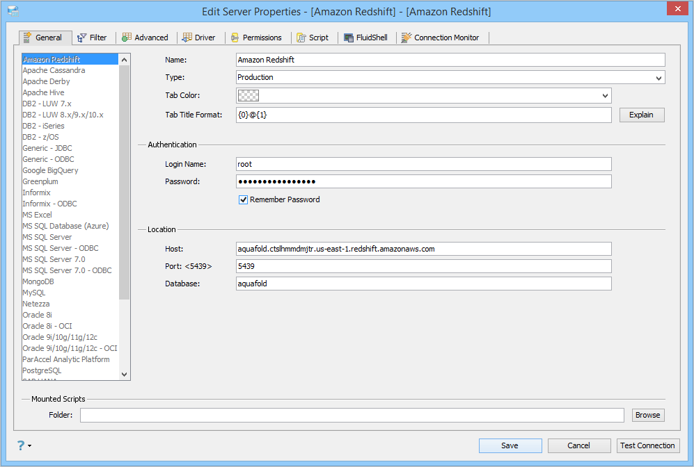 Edit Scripts in Server Properties in Aqua Data Studio: