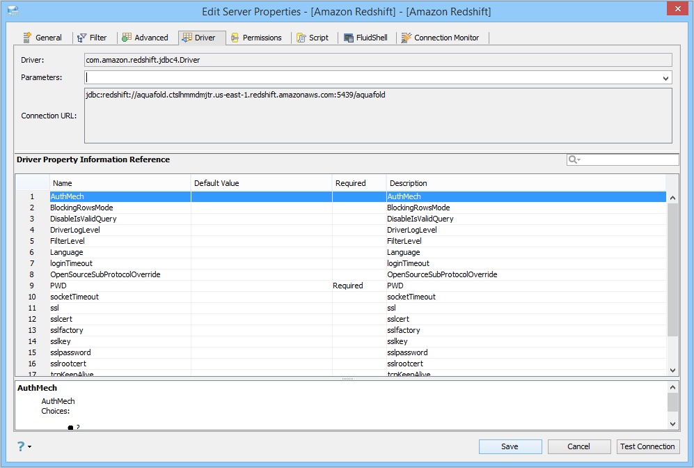 Edit the Drivers Properties to use Driver Parameters in Aqua Data Studio: