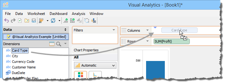 For this example, you will build a Basic View to display Profit by Credit Card Type based on the Visual Analytics Example xlsx file we connected to in the Building Views page. Perform the following steps to build the view.